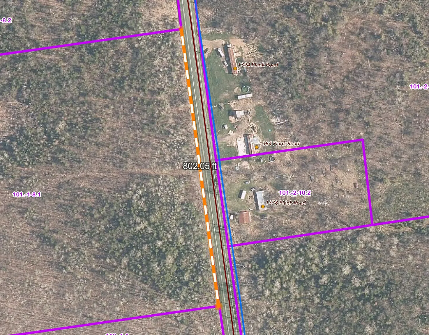 A rectangular shape and 800 feet of road frontage provide straightforward access from the road. The level terrain makes walking the grounds manageable.