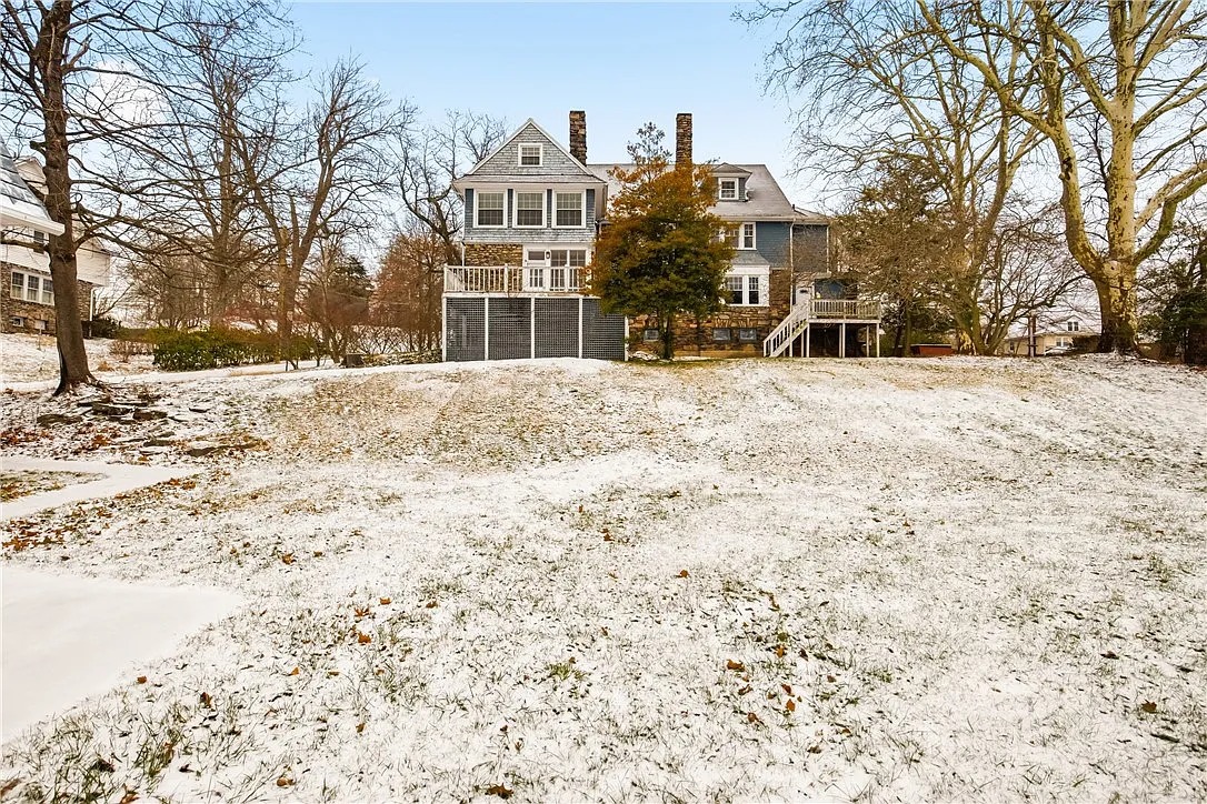The main dwelling showcases beautiful hardwood floors across its many levels. Within the interiors, you also find multiple wood-burning fireplaces. These features speak to the home’s early 20th-century design period. Six or more very generous bedrooms define the home’s scale. Five full bathrooms provide extensive facilities for a large household. One certainly appreciates the structure’s robust and classic architectural framework. This building provides an exceptional foundation for sensitive modernization. Therefore, buyers can implement a design truly reflecting their specific needs. This sizeable property allows significant flexibility in planning. Moreover, the house is confirmed as sewer compliant, removing one common concern. Consequently, we highlight the inherent value in this property’s size.