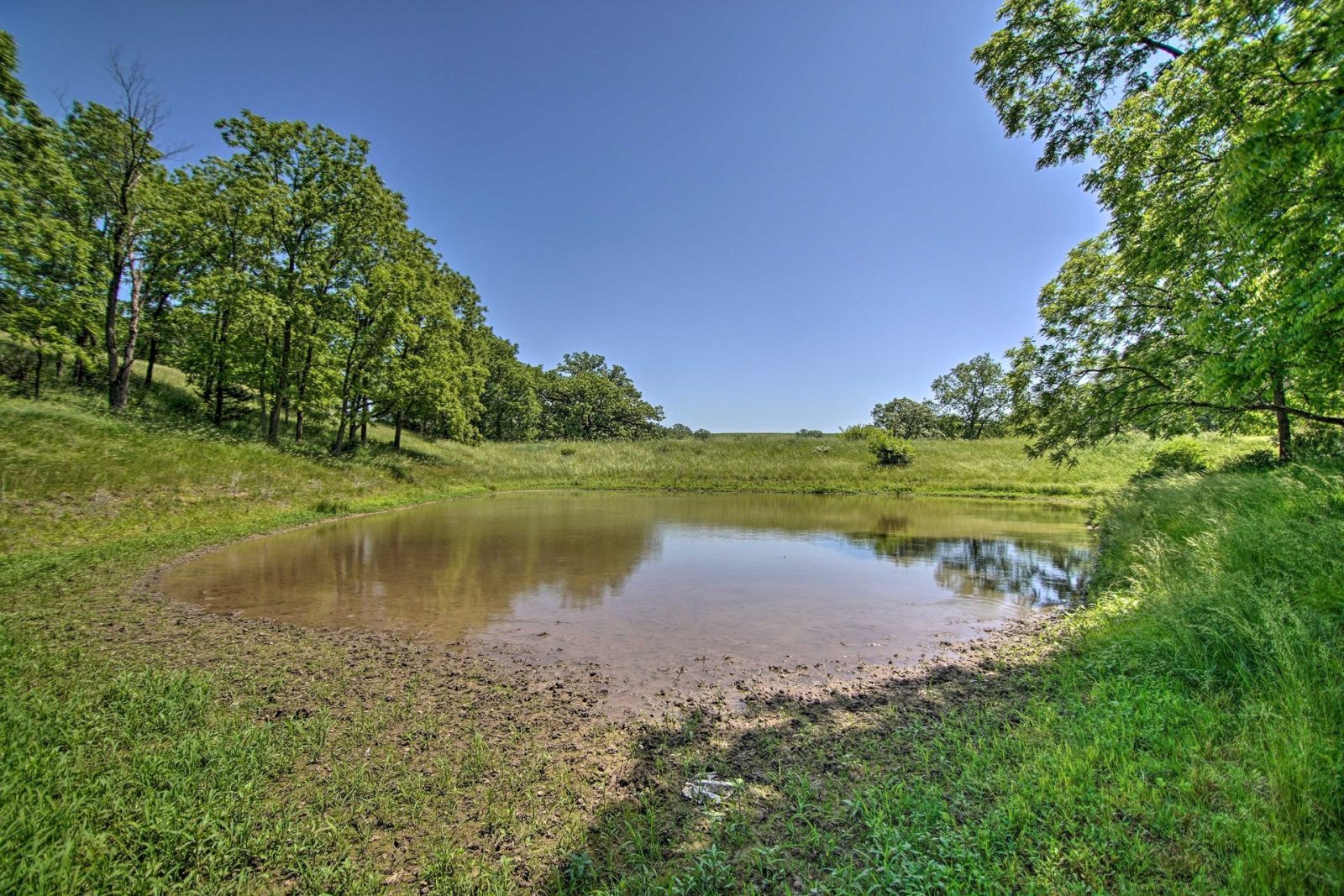 The land encourages outdoor use through every season of the year. A pond sits on-site and adds visual interest while supporting quiet moments. The covered deck extends living space outdoors and works well during changing weather. Fire pits, seating areas, and lawn games create gathering spots for evenings together. Because the acreage remains open and active, guests can explore freely without leaving the property. Farm activity nearby adds a living landscape throughout warmer months.