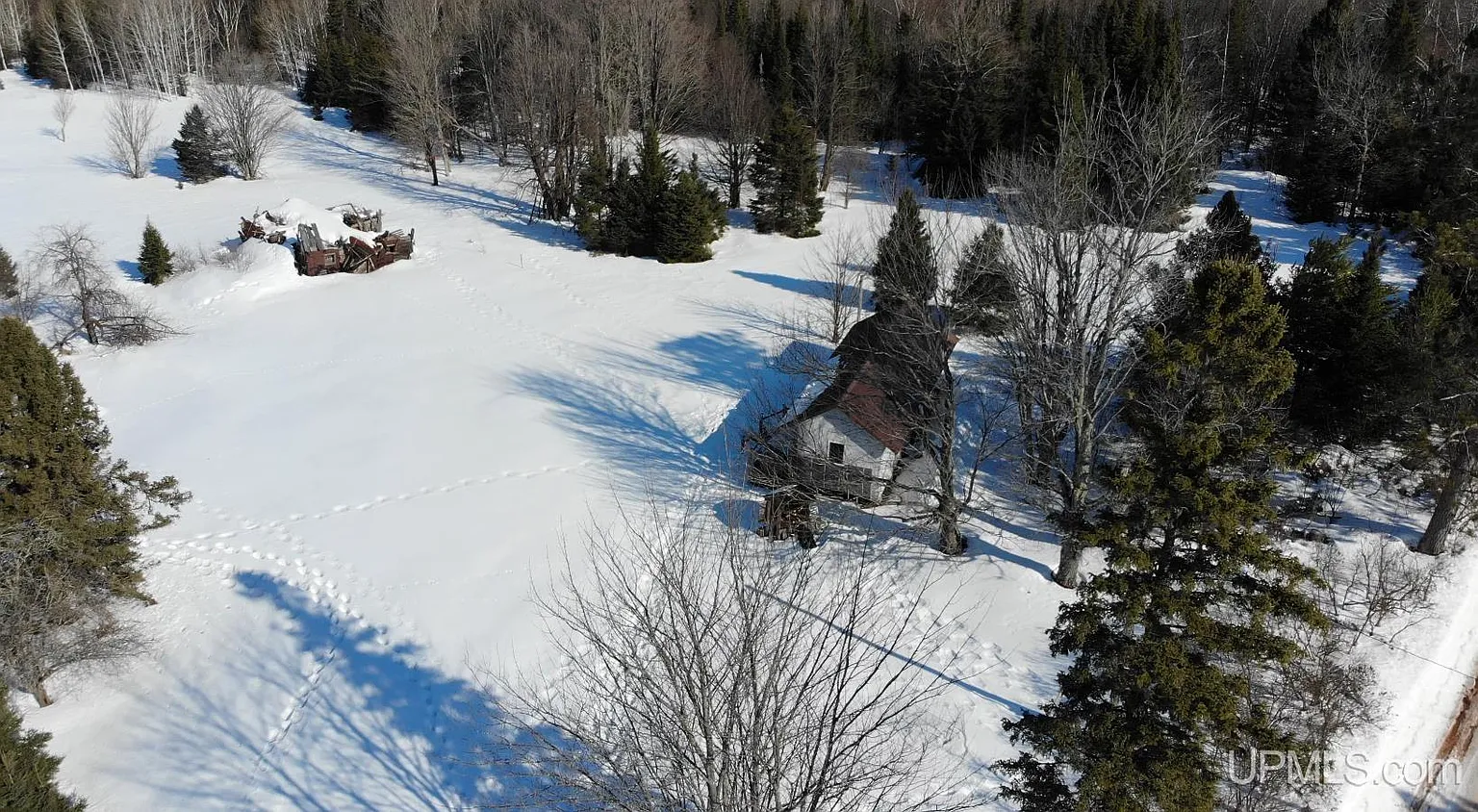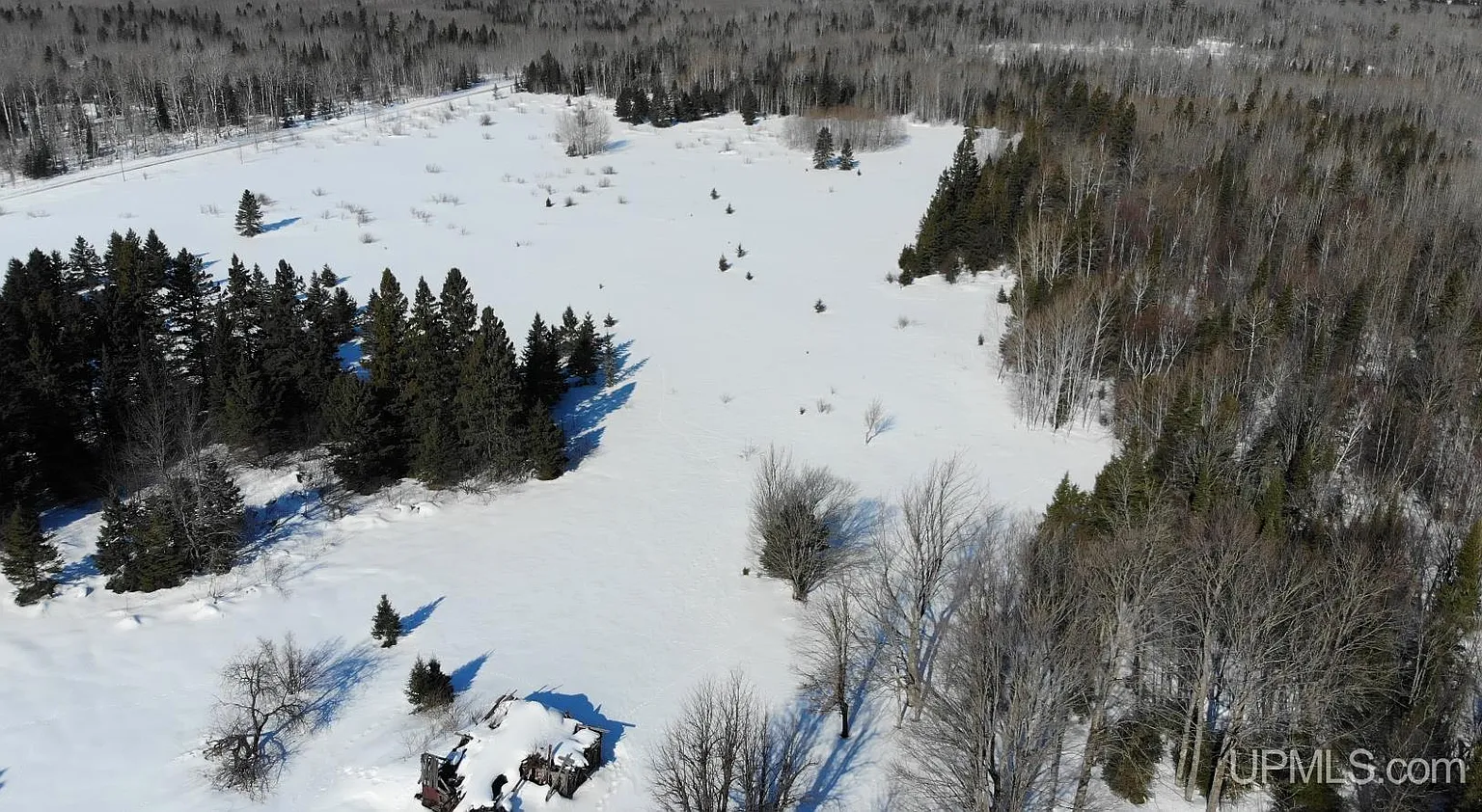 This 68-acre property in Ewen, Michigan includes a small 480-square-foot cabin-style structure with no defined bedrooms or bathrooms. The setup leans more toward a basic camp than a finished home. At the same time, the land offers a mix of open and wooded areas, which opens up several use cases. This one could work well for someone looking for a recreational base or a future homestead project.