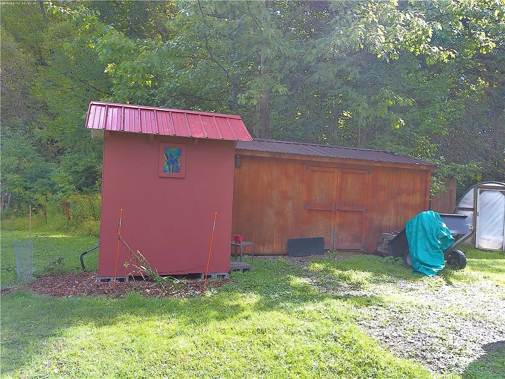 Furthermore, the land includes a pond, gazebo, greenhouse, sheds, and a garden spot. These additions support gardening, storage, and relaxation. The acreage also allows room for expansion or small-scale agricultural projects.