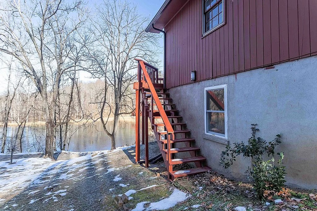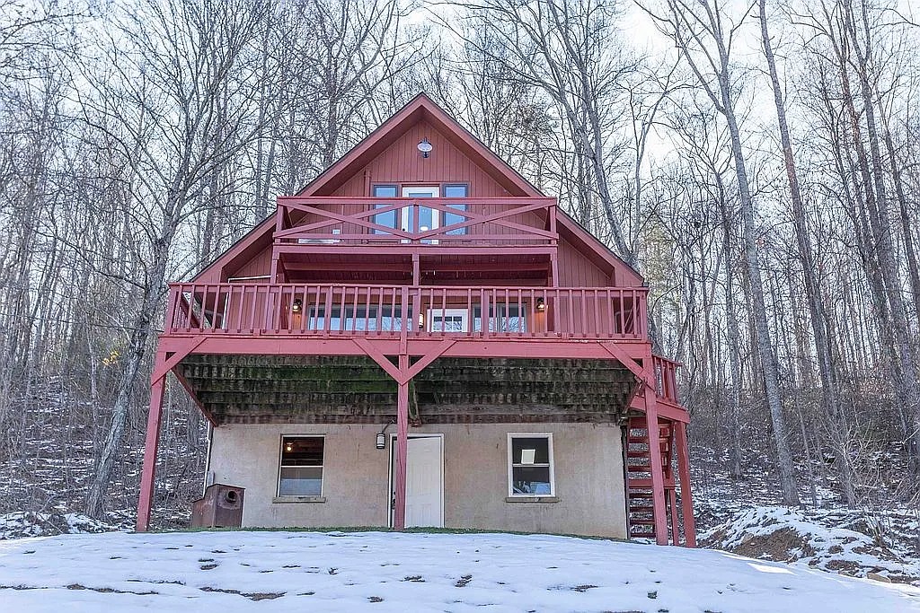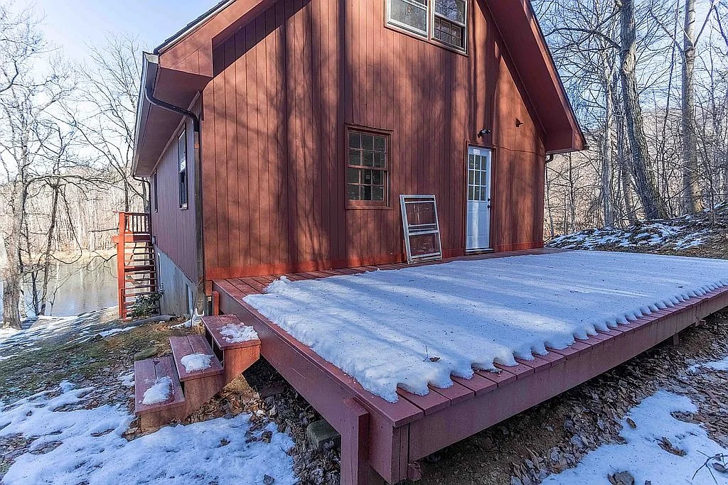 This lakefront chalet in Amherst, Virginia offers privacy, elevation, and expansive forest surroundings. Builders completed the home in 1969, and recent renovations refreshed the interior throughout. The chalet includes three bedrooms, two bathrooms, and roughly 1,400 square feet of living space. Because the property spans twenty acres, daily life feels separated from surrounding development. The setting supports outdoor routines, recreation, and quiet downtime. Moreover, the private lake creates a natural focal point for the property. Owners enjoy views, movement, and seasonal changes from multiple levels. The home supports year round use without compromise.