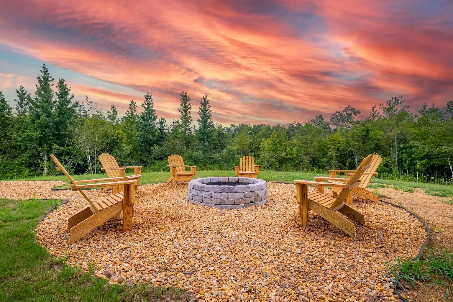 Outdoor living plays a major role here. Consequently, the gravel fire pit area with Adirondack seating encourages relaxation under open skies. With this setup, mornings and evenings feel slow and peaceful. The land includes a trail system, three food plots, and established shooting houses for deer and turkey. Altogether, the cleared perimeter supports future plans for a high-fence enclosure, offering potential for managed hunting or wildlife care.