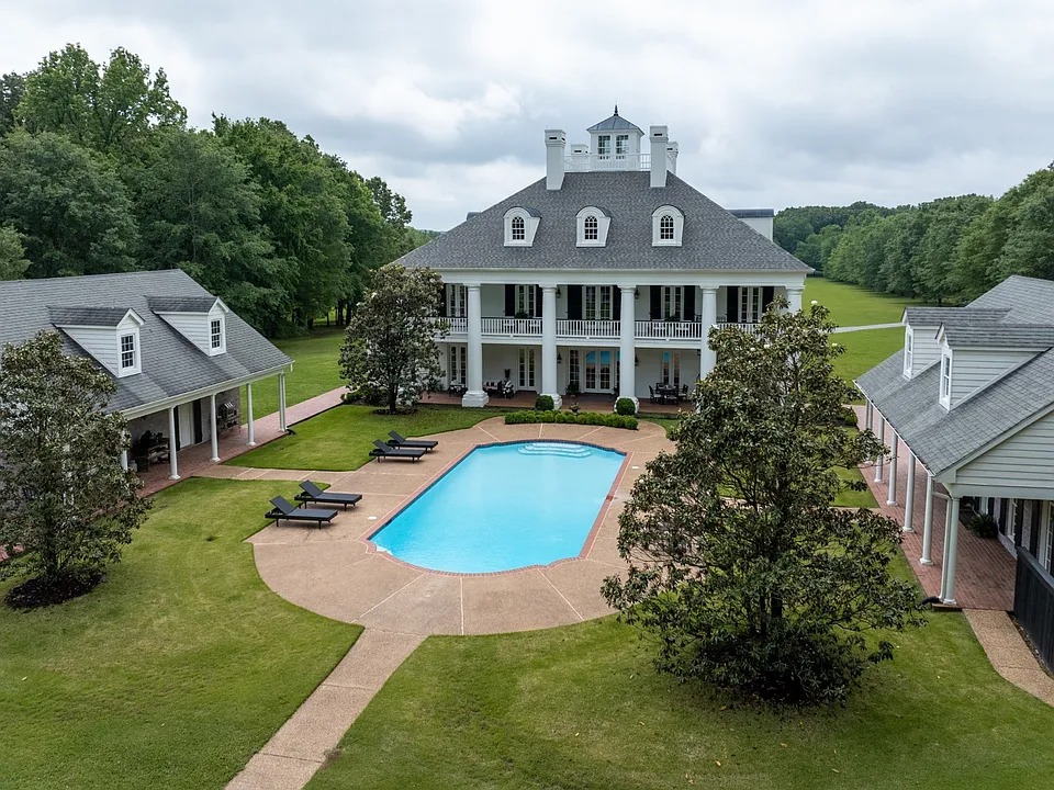 The estate stands across 137.65 acres in Eads, Tennessee and delivers scale, privacy, and destination living. A long tree-lined drive guides visitors through open fields and natural scenery. Along the way, views unfold across water, pasture, and wooded edges. Because the land stretches wide, daily routines feel unhurried and immersive. Moreover, controlled access enhances privacy throughout the property. Owners enjoy space for gathering, reflection, and long-term planning. Therefore, this estate supports lifestyle living rather than simple residence.