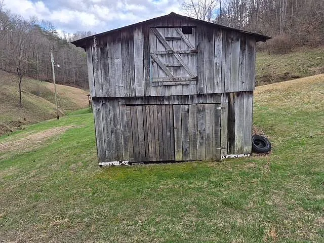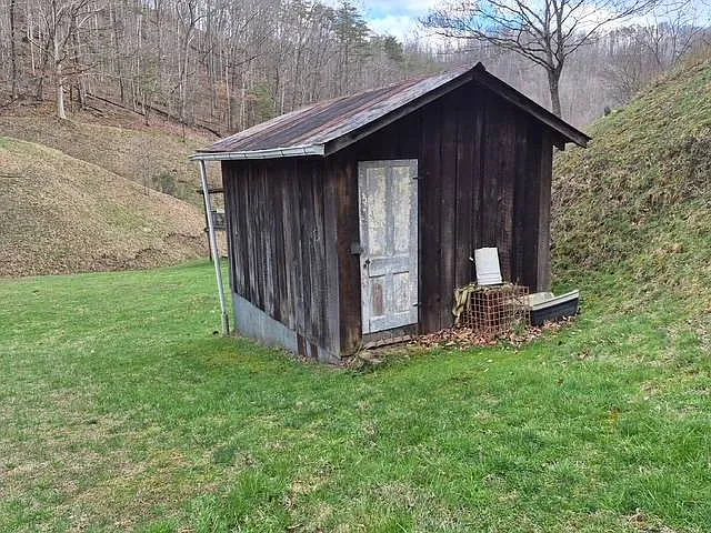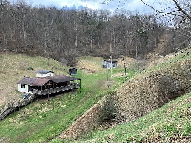 This 2-bedroom, 1-bath farmhouse sits on 54 acres just outside Burnsville, West Virginia. The home offers 848 square feet, which keeps things simple and manageable. At the same time, the land and stream create a very different scale of opportunity. This setup could work well for someone looking to step into country living with room to grow.