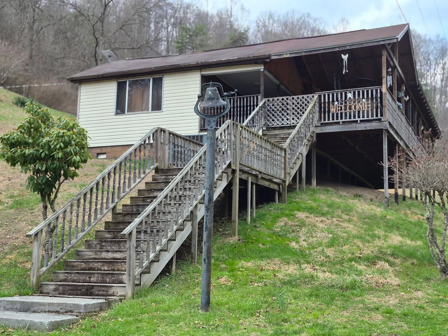 The house itself is modest, yet it includes the basics for daily use. In addition, the covered front porch stands out as a practical feature for outdoor time. The sound of the nearby stream adds to the setting without needing extra work. This one feels more about the land than the structure.