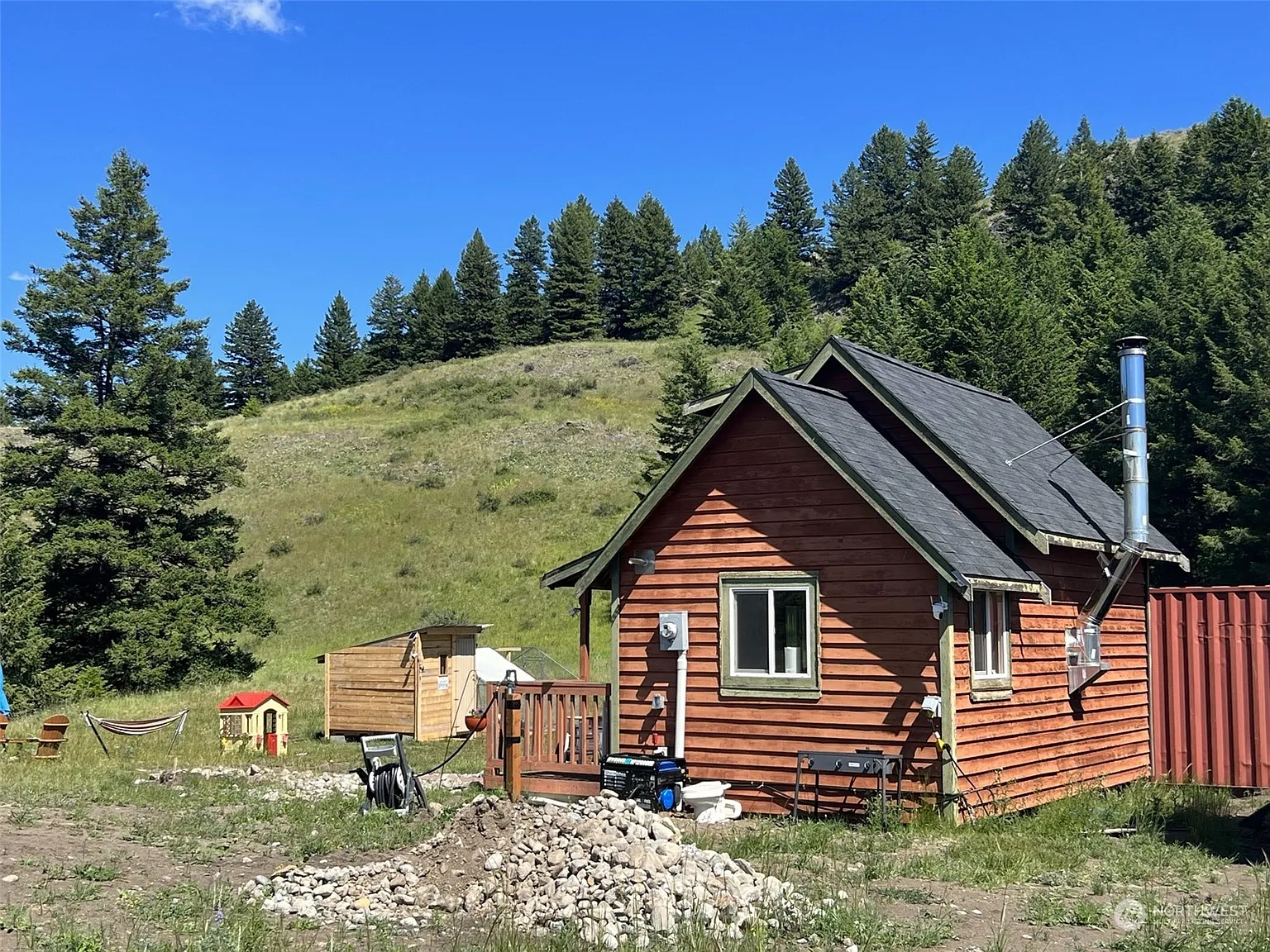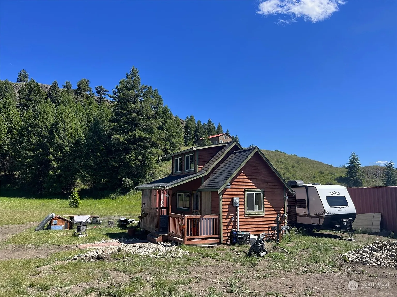 The property sits near the Chesaw area, which keeps things more quiet and spread out. It’s not a busy setting, so it suits someone who prefers space and less activity around them. At the same time, you still have basic access to nearby towns when needed.