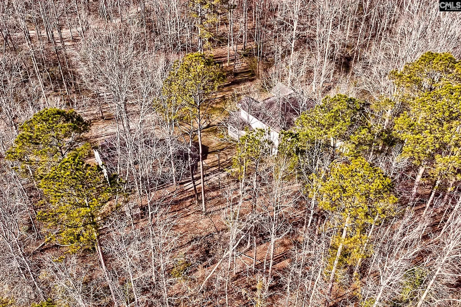The 14-acre lot includes mostly wooded land, along with some open space near the entrance. This balance allows for both privacy and usable outdoor areas. For example, the open section could support gardening or small-scale farming.