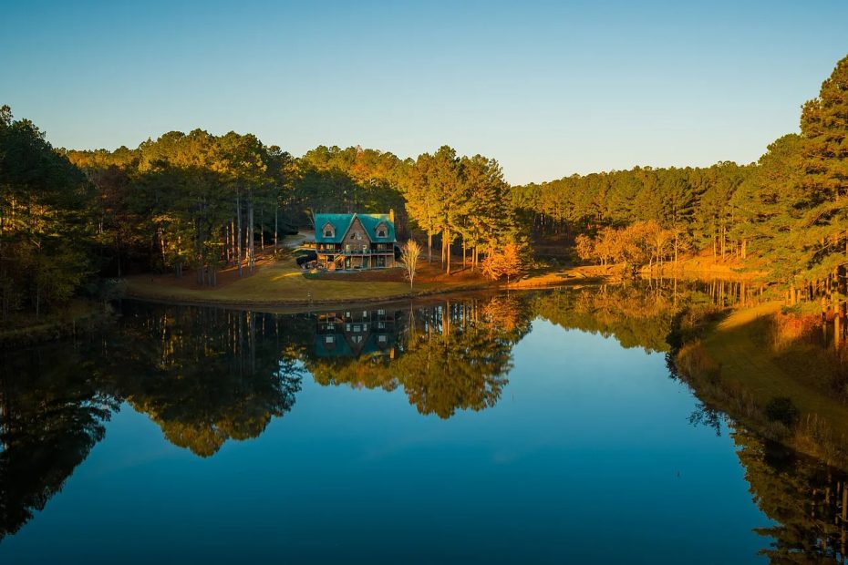 This property includes a large lodge style home set on approximately 1,544 acres near Macon, Georgia. The residence offers about 4,000 square feet with five bedrooms and four and a half bathrooms. Because the land stretches across forests, creeks, and a private lake, the setting supports outdoor living and recreation. Some owners might treat the property as a family retreat. Others could focus on land management, hunting, or conservation activities.