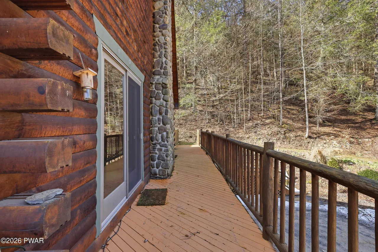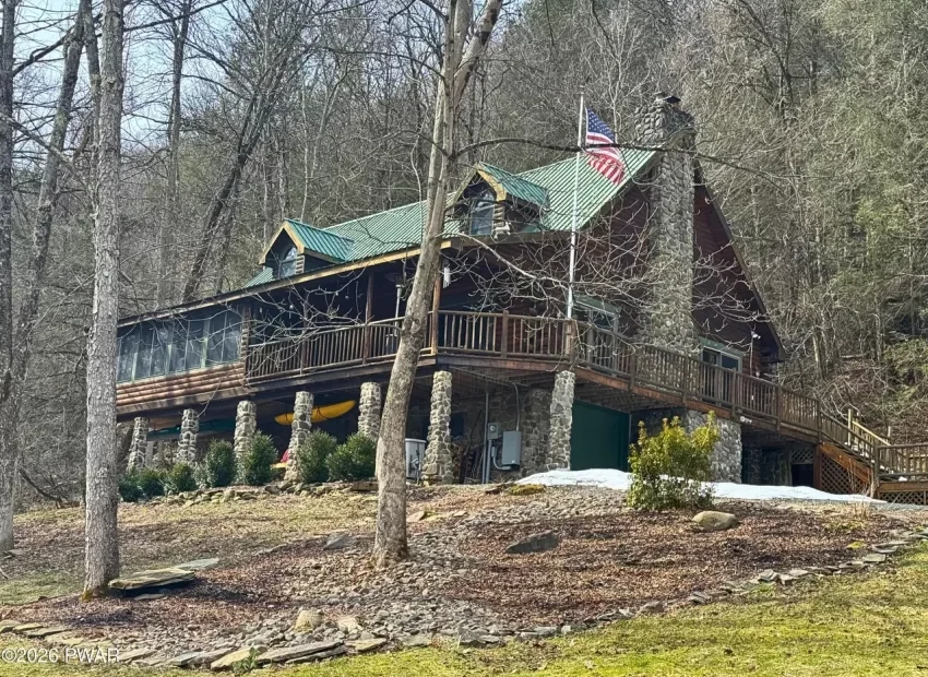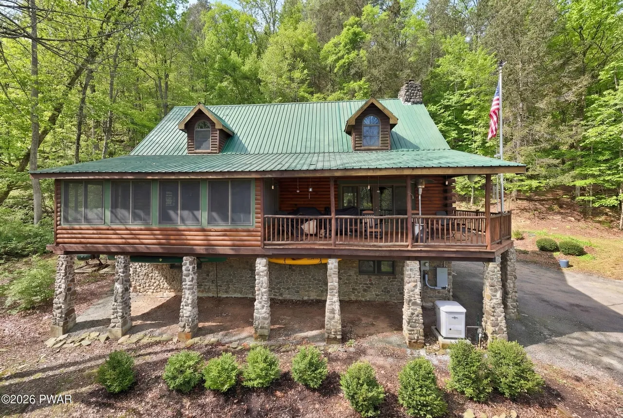 This 3-bedroom, 3-bath log home sits on 17.82 acres in Starlight, Pennsylvania. The house offers around 2,597 square feet and a layout that leans toward open living spaces. At the same time, the land connects directly to the Delaware River’s West Branch. This combination makes the property useful for both everyday living and outdoor-focused use. This one could work well for someone looking to balance indoor comfort with access to nature.