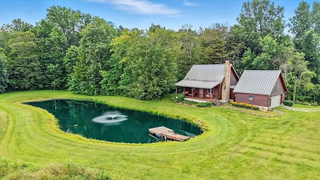 This Crestline log cabin offers a peaceful lifestyle surrounded by woods, water, and rolling land. The 17.48-acre parcel includes mature trees, open spaces, and a quiet pond that reflects the sky throughout the seasons. Moreover, the long views create a sense of calm that supports slow mornings and relaxed evenings. Also, the setting works well for buyers who value privacy without giving up everyday convenience. In addition, the natural layout encourages time outdoors through walking, fishing, or simple relaxation near the water. Because of this, the property serves as a true year-round retreat.