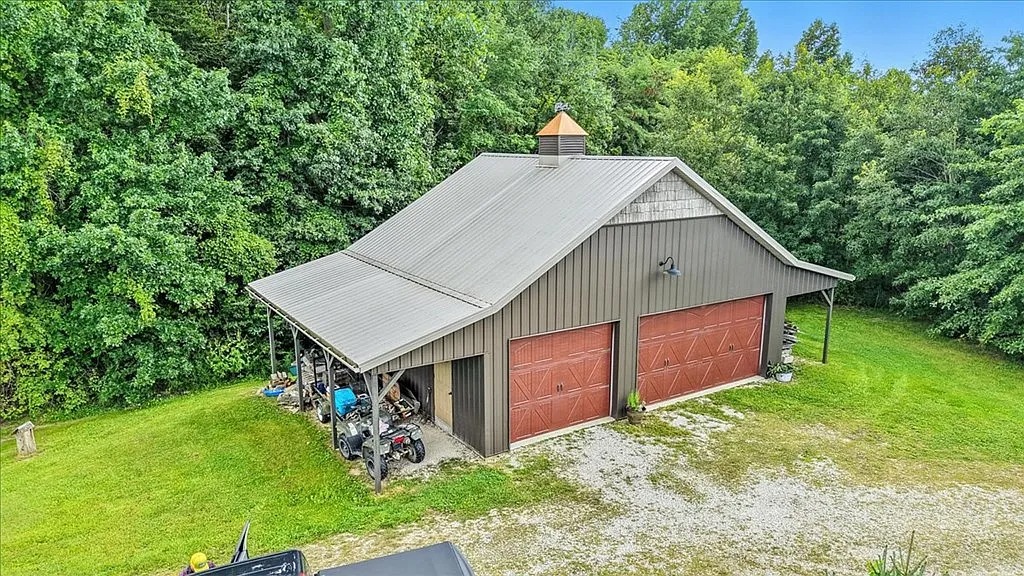 The cabin includes a two-car attached garage for vehicles, tools, and everyday gear. Moreover, the property also features a pole barn with three additional bays that support equipment, recreational vehicles, or workshop needs. Also, the outbuildings add convenience for owners who enjoy hands-on projects or outdoor hobbies. In addition, the combination of storage spaces helps keep the main cabin organized throughout the year. For this reason, the property blends rustic character with practical function. Altogether, the land, buildings, and cabin design work in harmony.