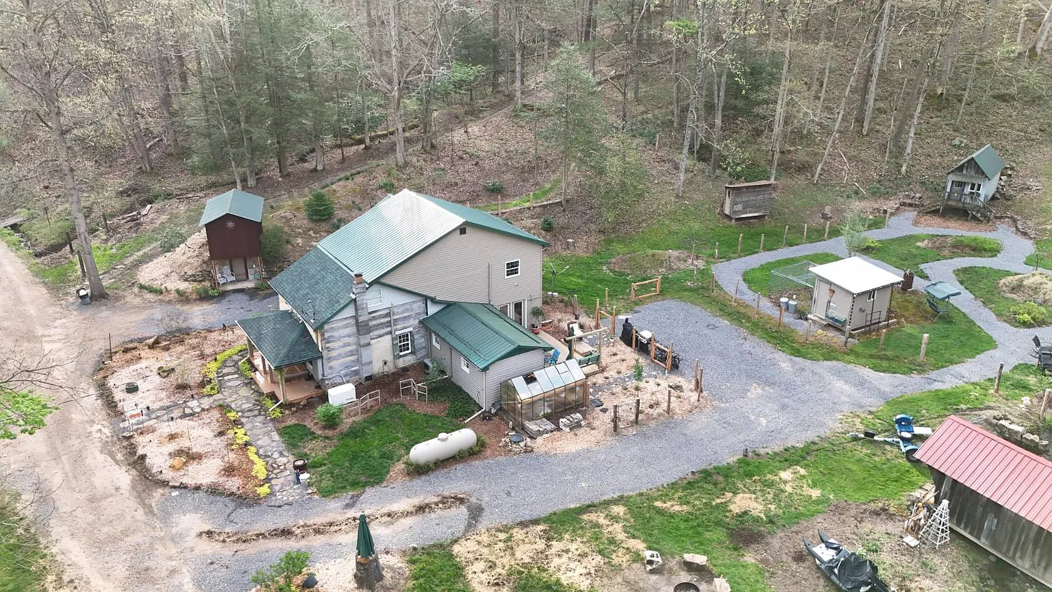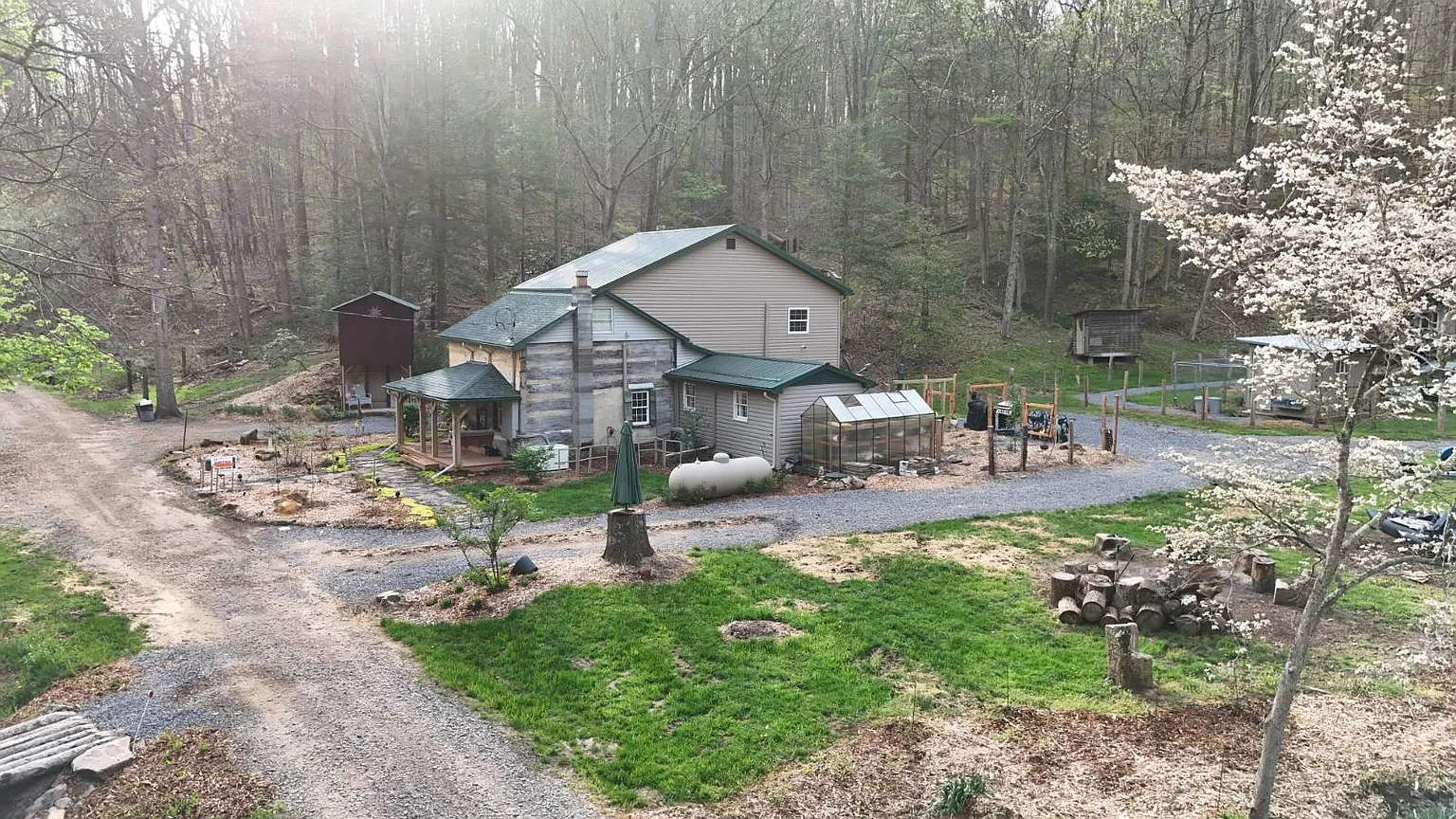 The cabin has been remodeled over the years so it mixes old log construction with newer updates. A new addition added extra space along with two bathrooms and one bedroom. You get propane heat and central air conditioning for comfort year round. The property includes a two-story cellar house for storage. This setup works well for people who like historic homes but want modern conveniences. You may need to plan for some ongoing maintenance because of the age of the original structure but the updates help.