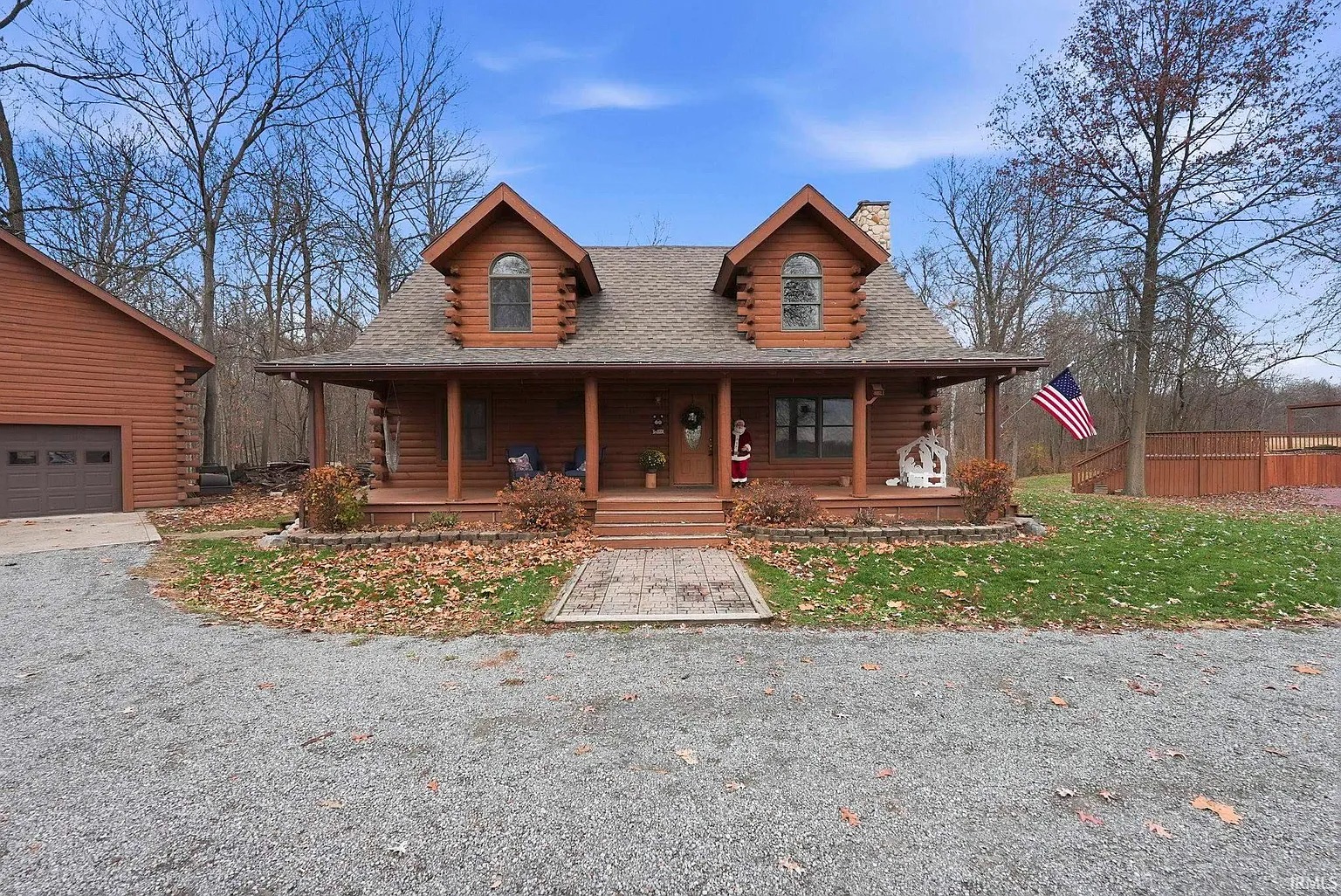 This log cabin in Butler, Indiana offers space, privacy, and a slower daily rhythm. Built in 2003, the home sits on 27.65 acres of wooded land. Because of the setting, daily life feels grounded and quiet. At the same time, the home provides modern comfort for full-time living. The handcrafted log construction gives the property a strong, lasting presence. As a result, this cabin supports both weekend escapes and longer stays without compromise.