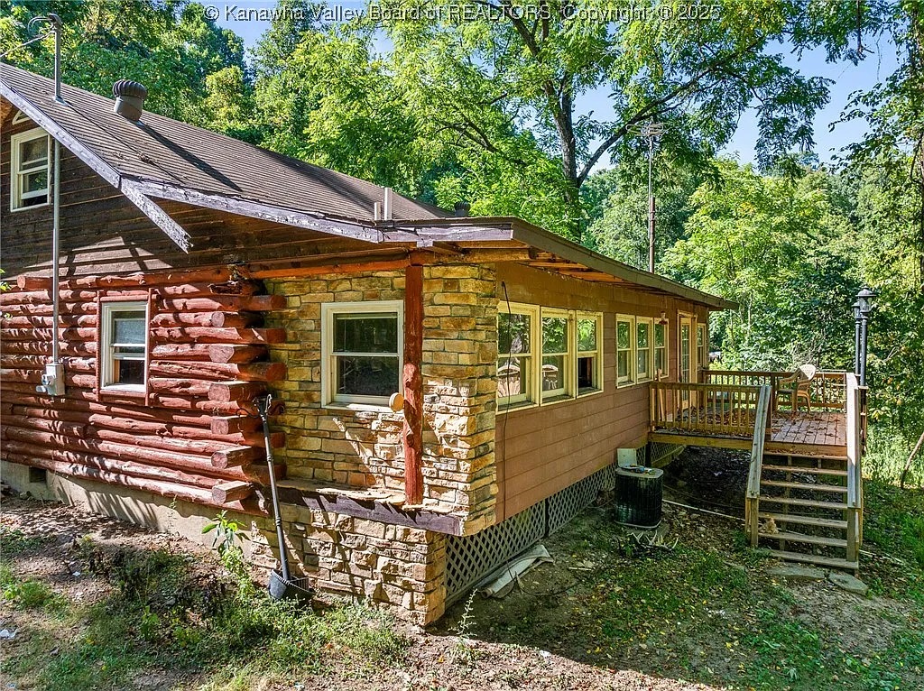 This secluded property in Lesage, West Virginia offers space, privacy, and a slower rural pace. Built in 1997, the log cabin sits at the end of a long private driveway. The setting immediately creates separation from traffic, noise, and nearby development. As you arrive, open land and wooded areas surround the home on every side. Because of the acreage, daily life here feels grounded and intentional. The property supports quiet mornings, productive afternoons, and evenings shaped by nature rather than schedules.