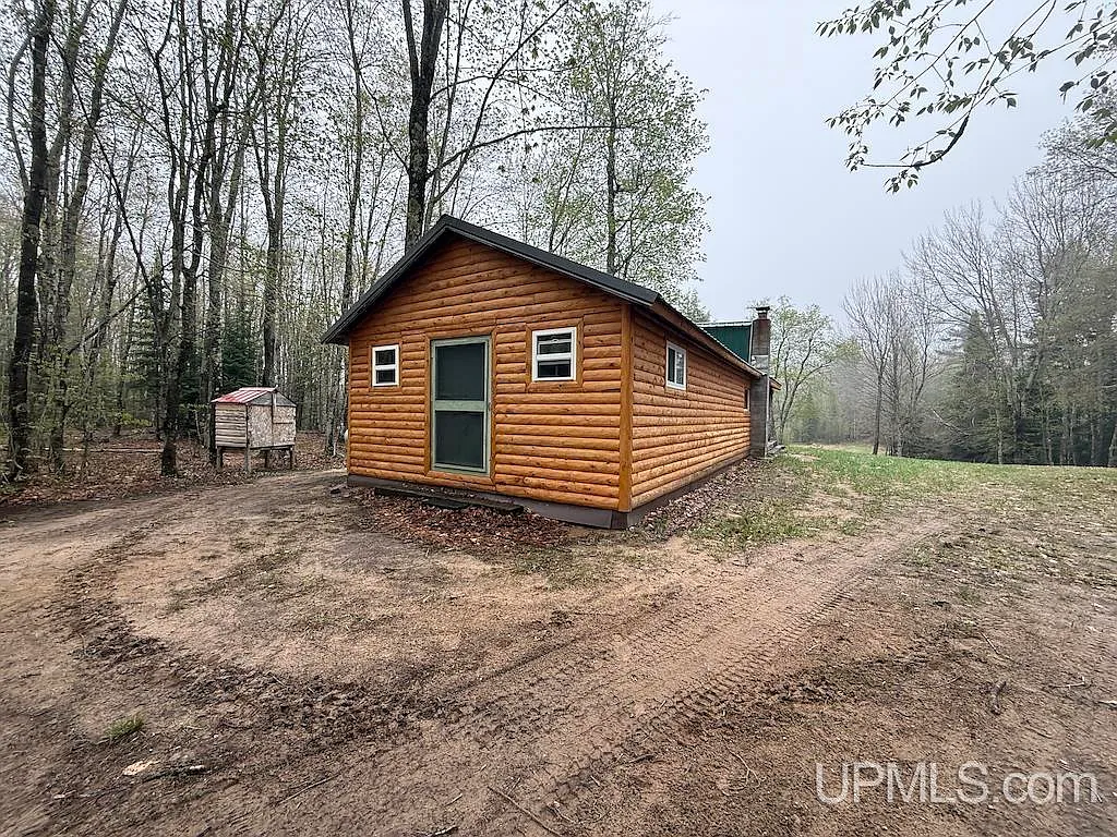 This log home with 80 acres offers a rustic retreat near Grand Marais, Michigan. The 1981 cabin provides 576 square feet with simple features like a wood cookstove, generator power, and hot water on demand. The groomed trails, cleared area, and Klondike Creek frontage support outdoor time and wildlife observation. The large acreage and off-grid setup suit seasonal or getaway use. Take time to visit the property to see the trails and cabin layout and picture how the land and simple comforts could fit your plans for a private Northwoods getaway.