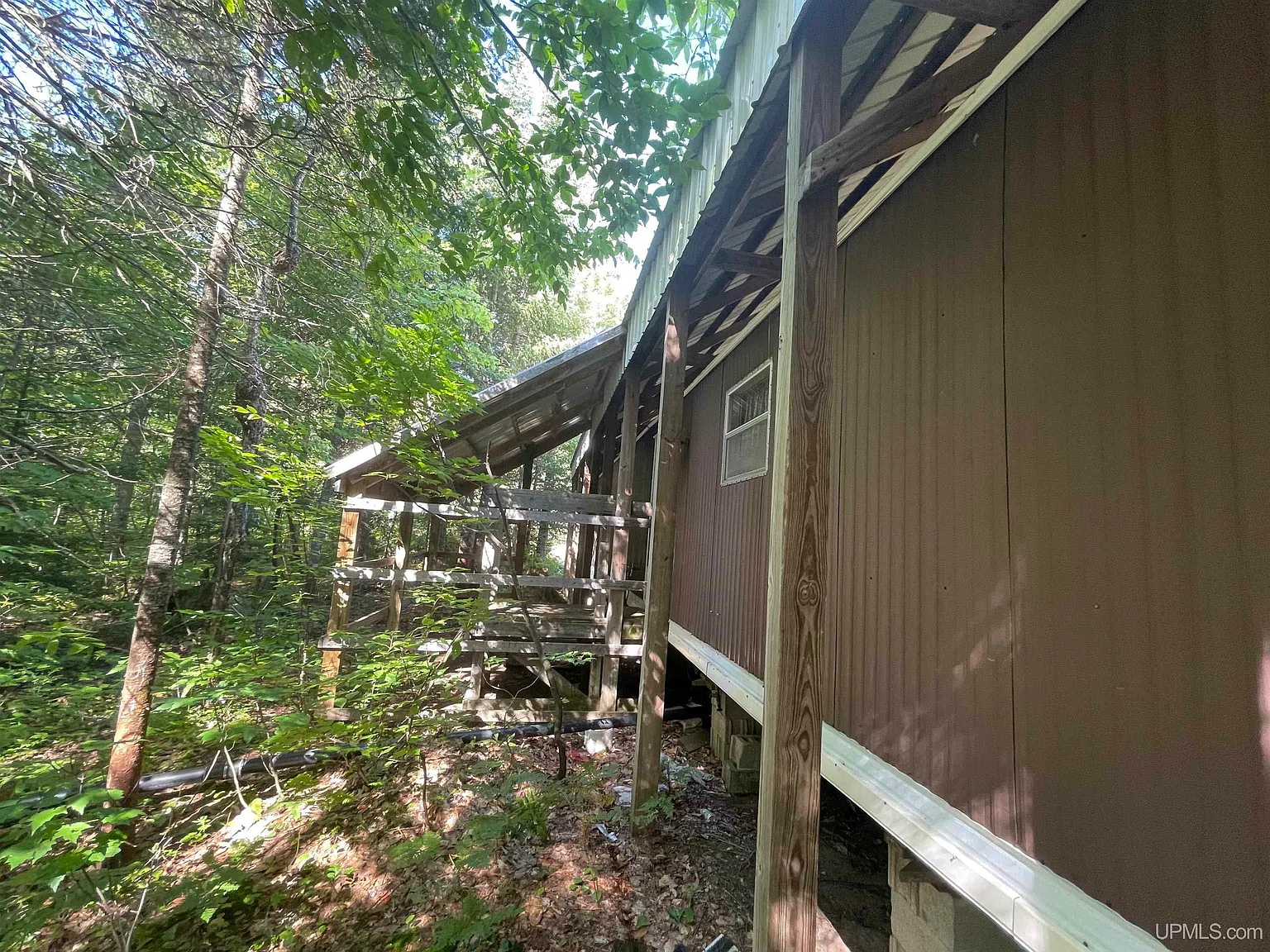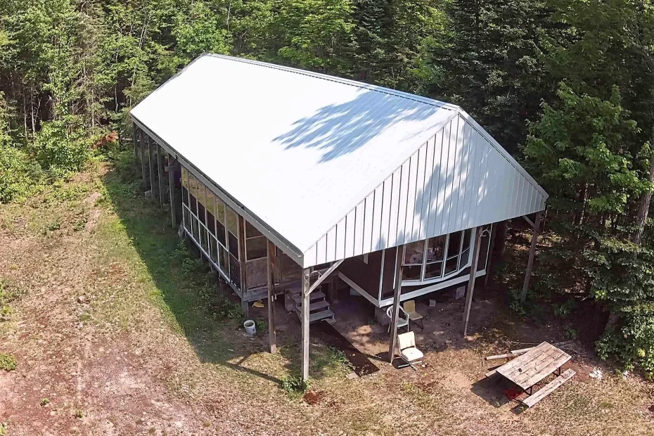 This single-level mobile manufactured home sits on 80 acres just outside Big Bay near Ishpeming, Michigan. Built in 1981, the place measures 756 square feet with 2 bedrooms and 1 bathroom. It rests along Boise Creek with 1,320 feet of waterfront. A 26×60 foot metal pole building frames the house, and a screened porch faces the creek. Many people look at acreage properties like this when they want a remote camp for summer or winter activities with direct trail access.