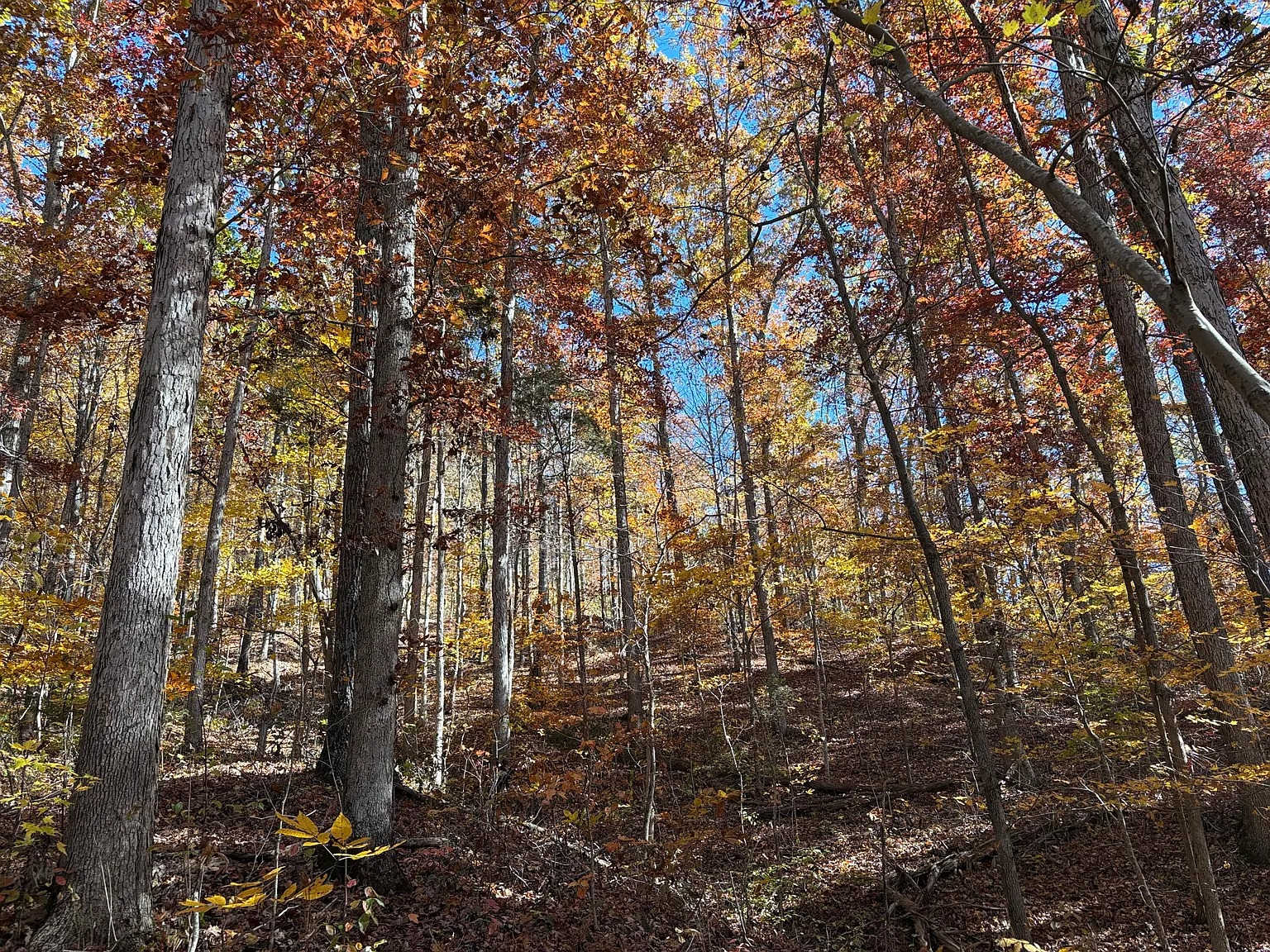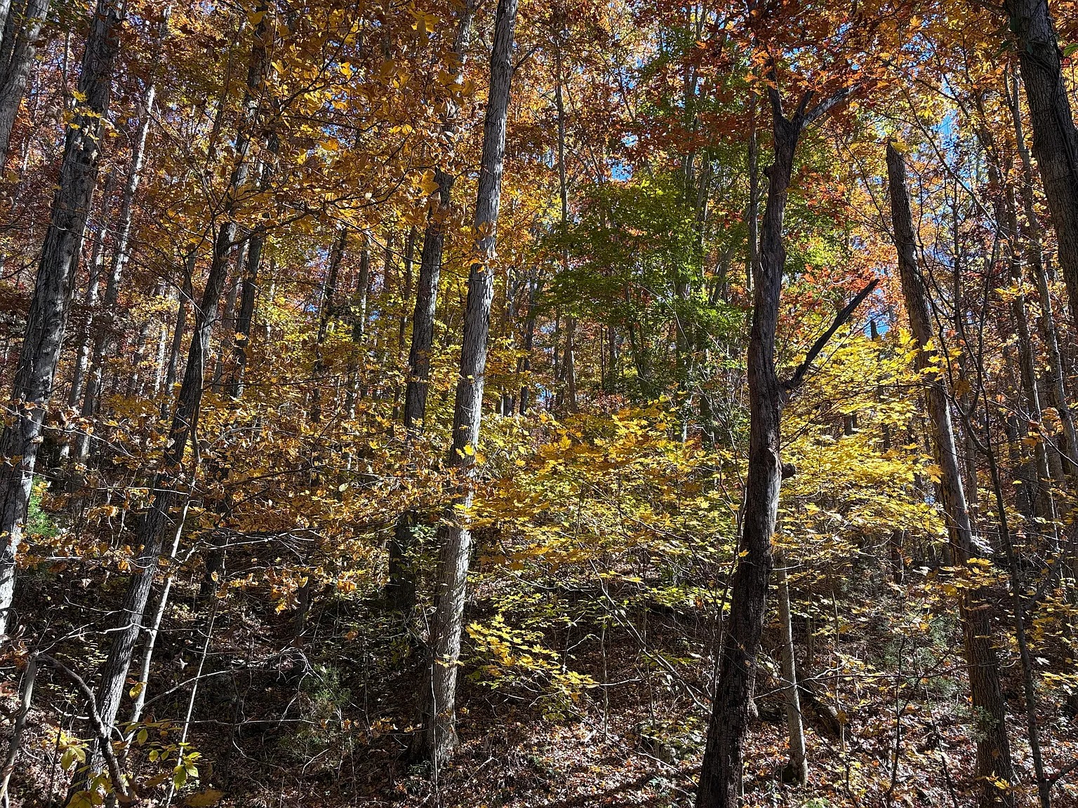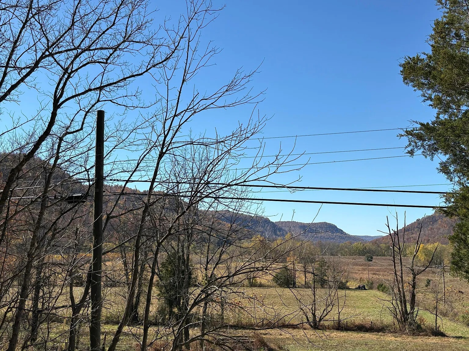 The mountain portion includes mature hardwood timber with marketable value. Limestone cliff faces rise above the terrain, creating dramatic hiking routes. Because wooded ground covers a large portion, wildlife activity stays consistent. Deer and turkey frequent the area throughout the seasons. Trails may expand over time, supporting hiking and recreational riding. This section adds long-term resource value and outdoor appeal.