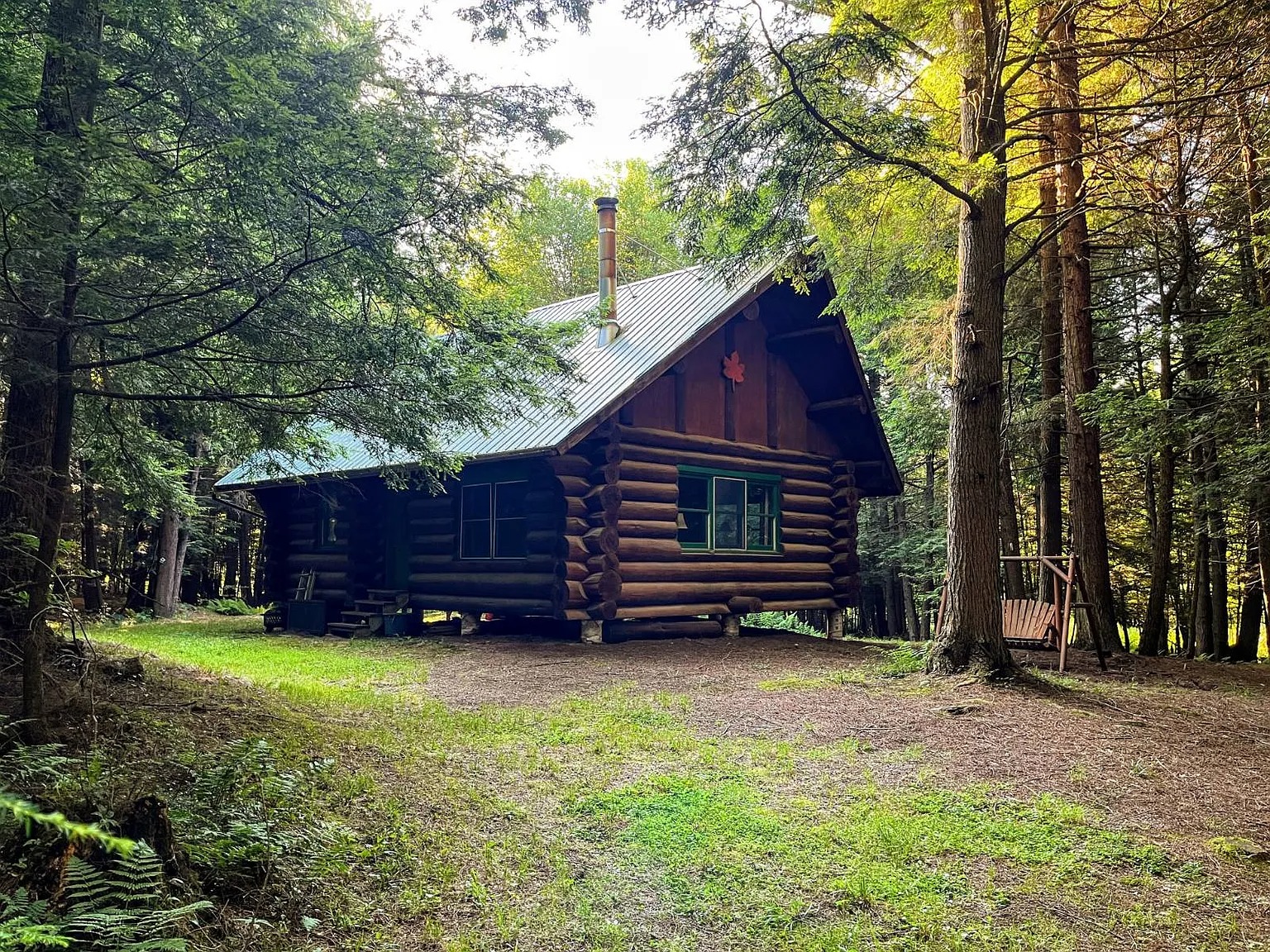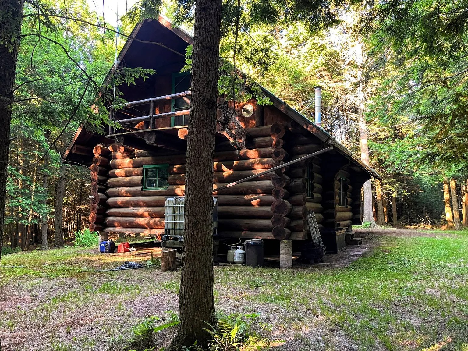 This 13.3-acre property in Gouverneur, New York, offers space, privacy, and natural beauty. The off-grid log cabin measures about 900 square feet and showcases expert craftsmanship. Moreover, the builder used 15-inch red-pine logs, shaping each one carefully to fit the next. Because of this precision, the cabin stands strong and protects you through every season.