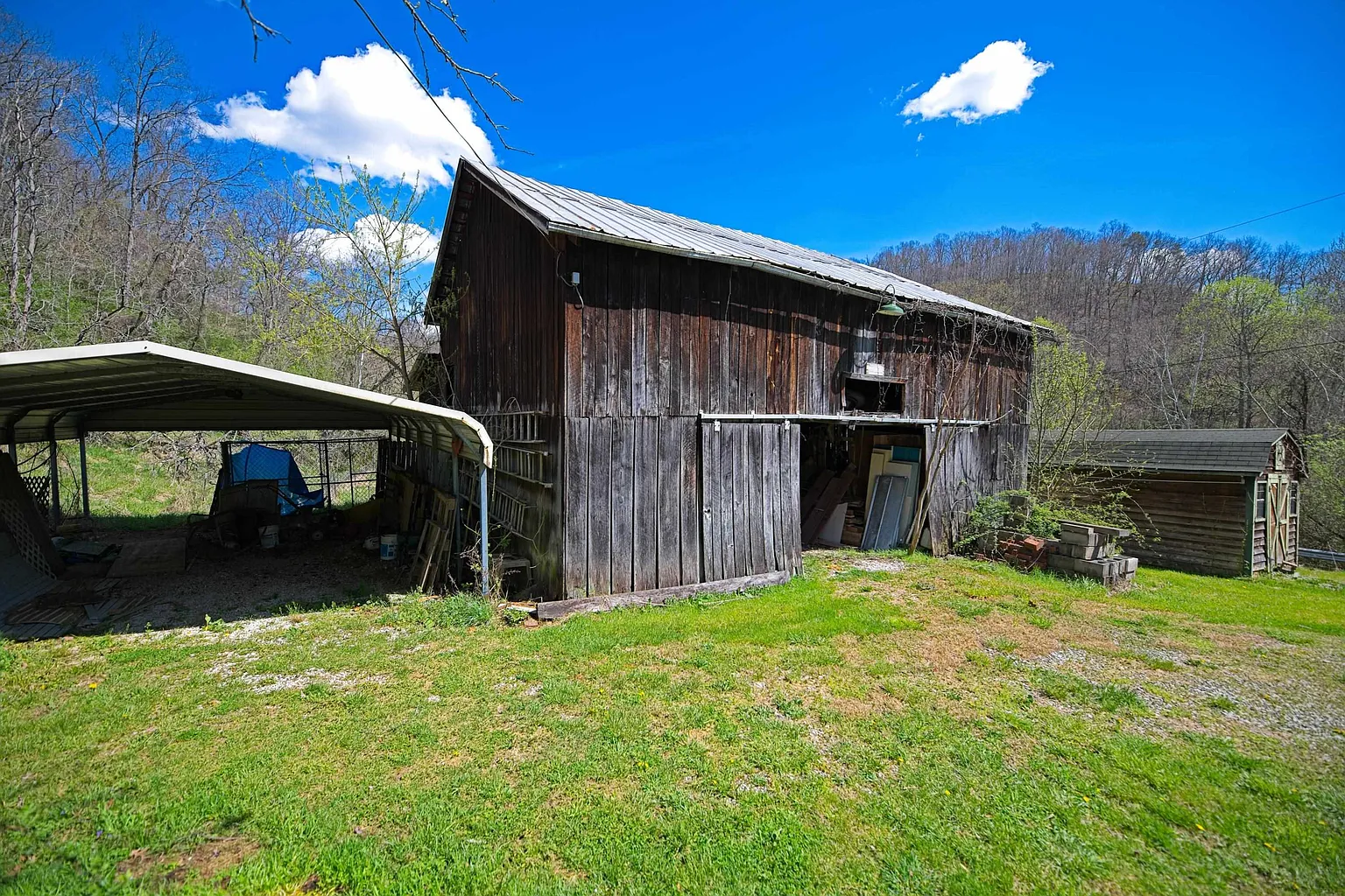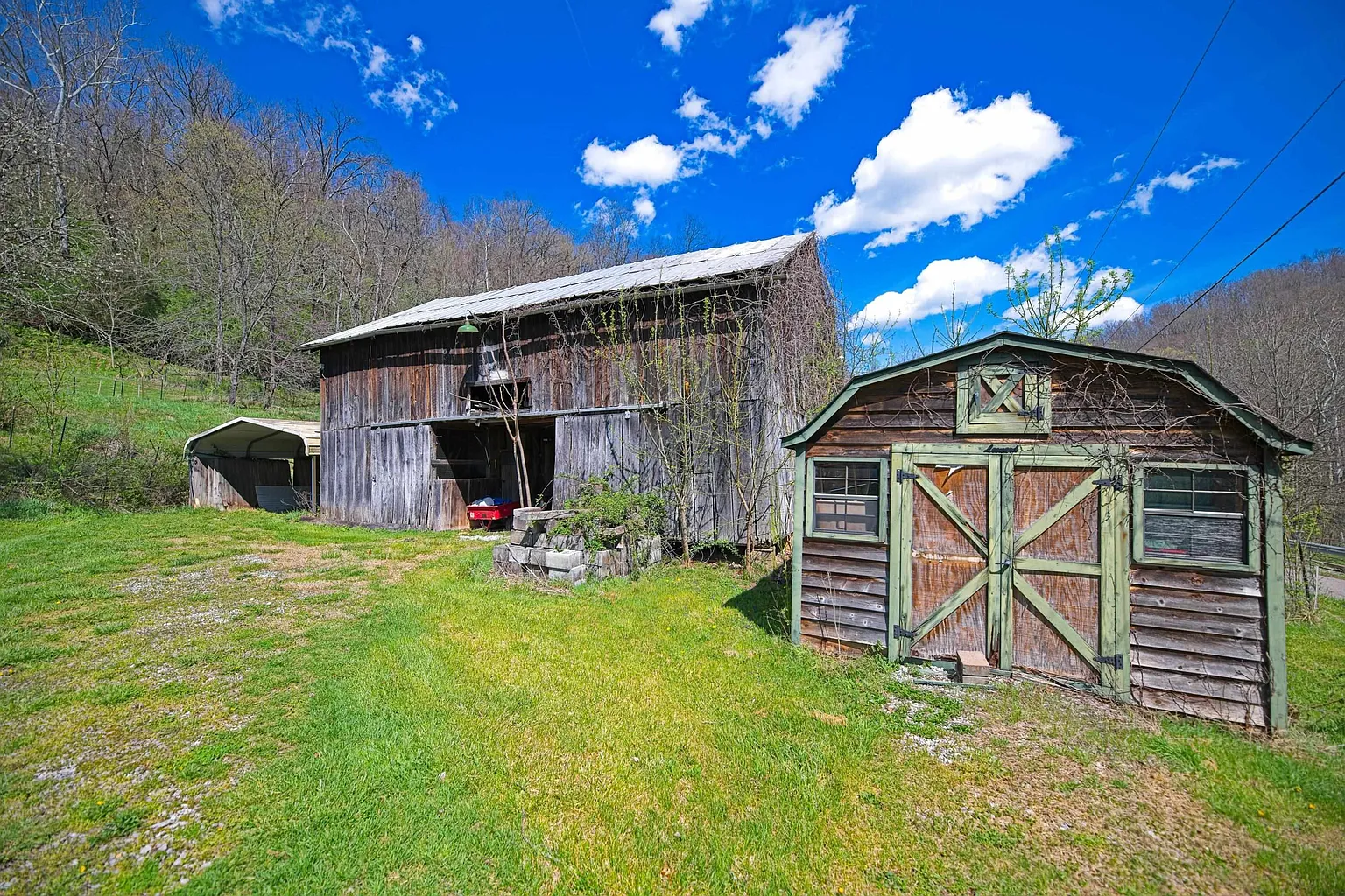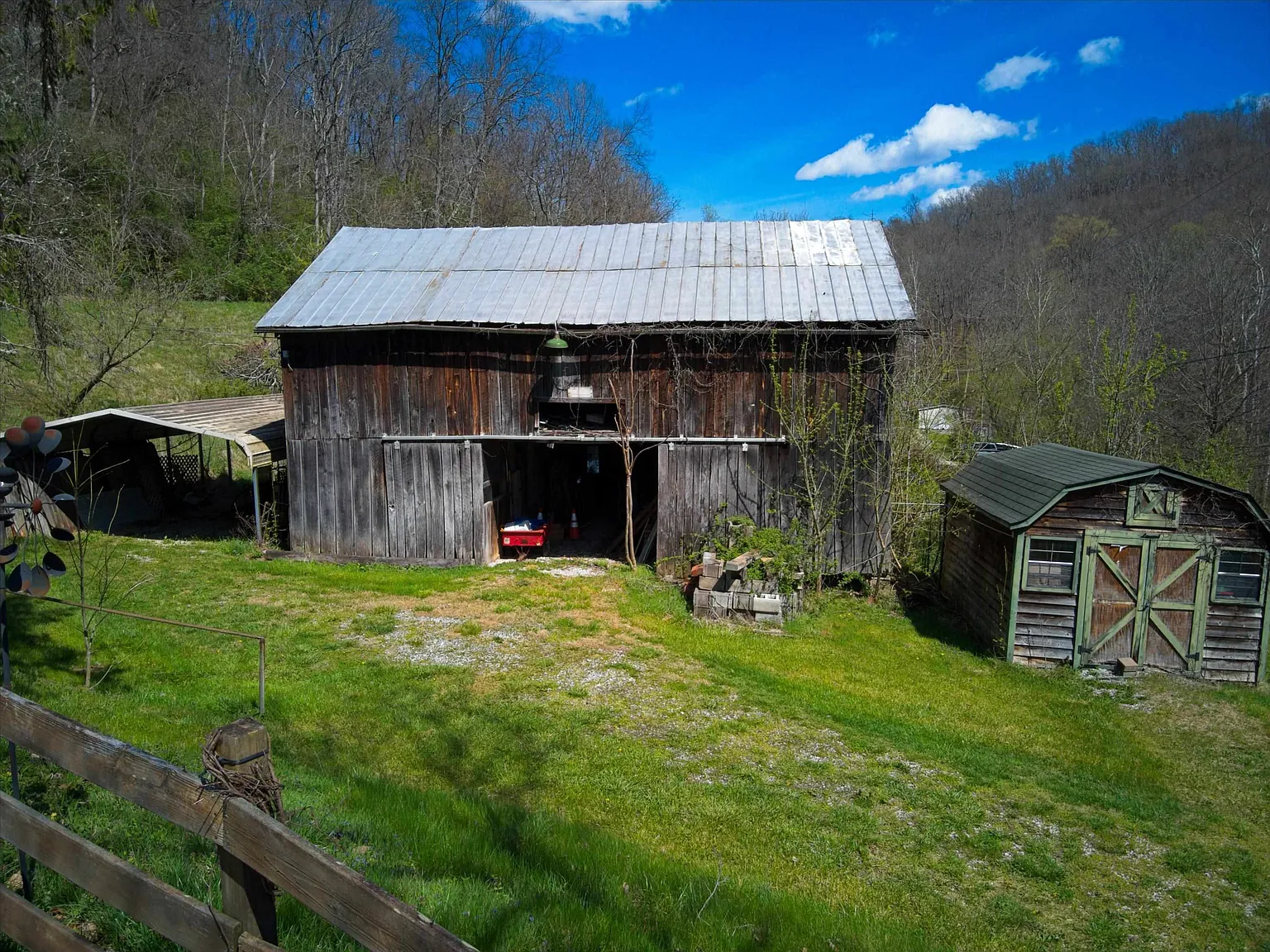 The 39.86-acre lot features rolling, sloping, and hilly topography with wooded areas. Open fields mix with the woods to create varied terrain. A large barn provides storage and work space for equipment or animals. Several detached buildings, including a workshop, add layers for tools and supplies. The acreage allows room for farming tasks, recreation, or other land-based activities. The size and features support hands-on management without tight constraints. Trees and open sections give options for privacy or clearing as needed over time.