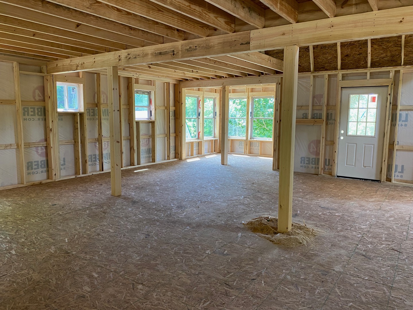 You decide the kitchen layout. You choose the bathroom fixtures. Some owners prefer rustic exposed beams, while others want a modern, finished appearance. By starting with a weather-tight structure, you can finish the inside at your own pace.