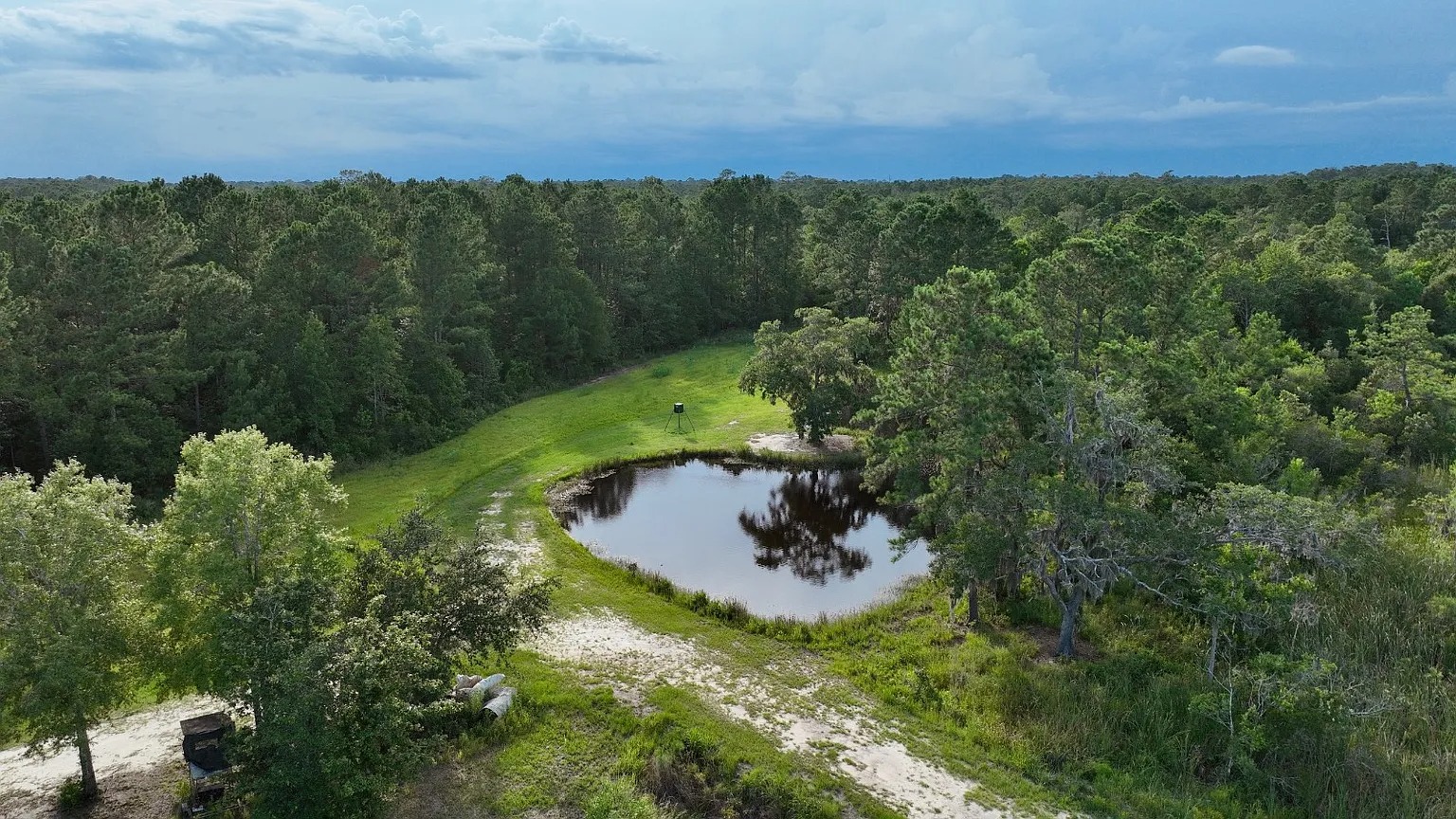 As you enter the property, a long gravel drive winds past tall pines and leads to the central lodge. This two-story barndominium combines comfort and function. The first floor offers secure, climate-controlled space for storing equipment and gear. Meanwhile, the second floor includes three bedrooms, two bathrooms, a full kitchen, and a wood-accented lounge area.